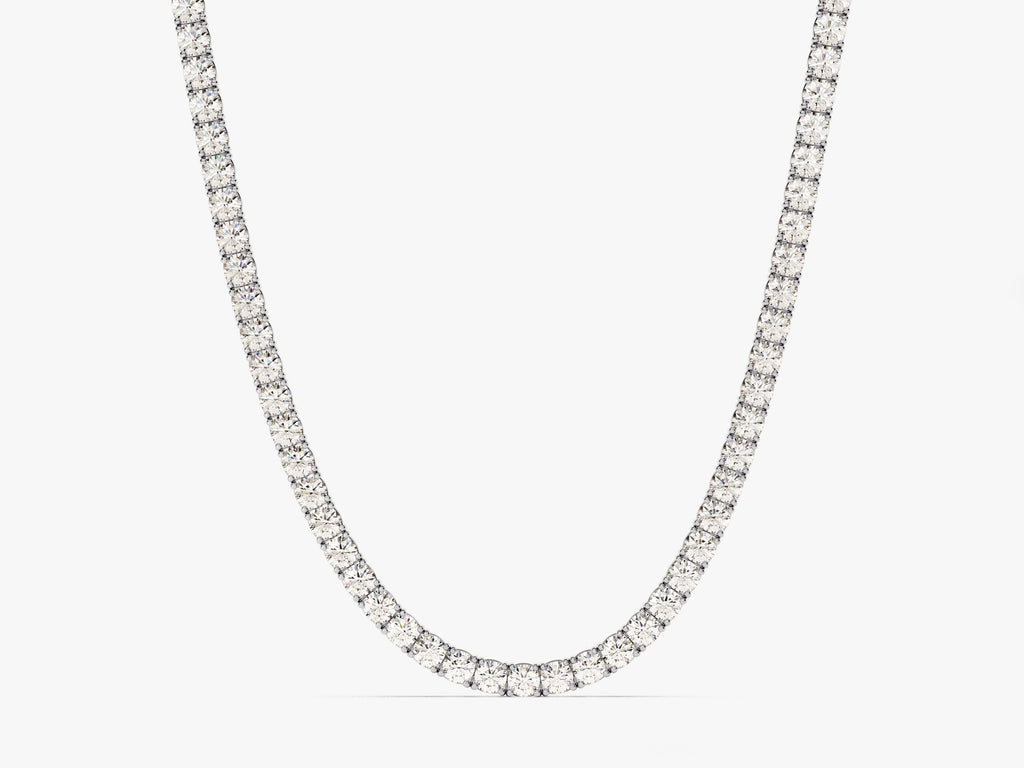 The Lab Diamond Tennis Necklace is a sophisticated and elegant piece of jewelry featuring lab-grown diamonds with a diameter of 3.00 millimeters. The necklace consists of a continuous string of these sparkling diamonds set in a delicate and classic tennis style, creating a timeless and glamorous accessory.
