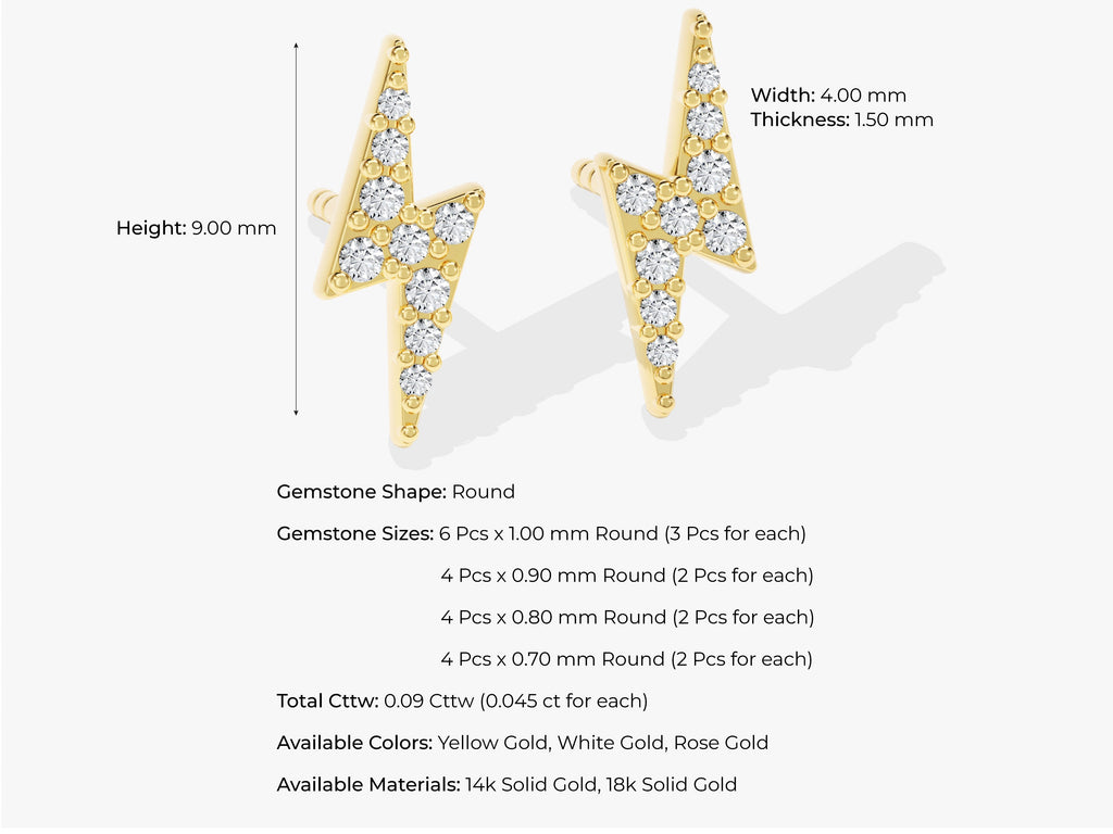 The Lightning Stud Earrings feature a striking lightning bolt design embellished with sparkling diamond - moissanite stones, combining edgy style with a touch of glamour. Crafted from solid gold, gold vermeil or sterling silver, these earrings offer both durability and a chic look, perfect for making a bold statement.