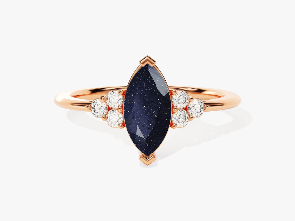 Step into a world of enchantment with our Marquise Blue Sandstone Engagement Ring, showcasing a captivating marquise-cut blue sandstone at its core. The shimmering particles within the blue sandstone evoke the magic of a starlit night sky.A symbol of enduring love and unique beauty, this ring is a perfect choice for those who appreciate both the extraordinary and the contemporary in their love story.