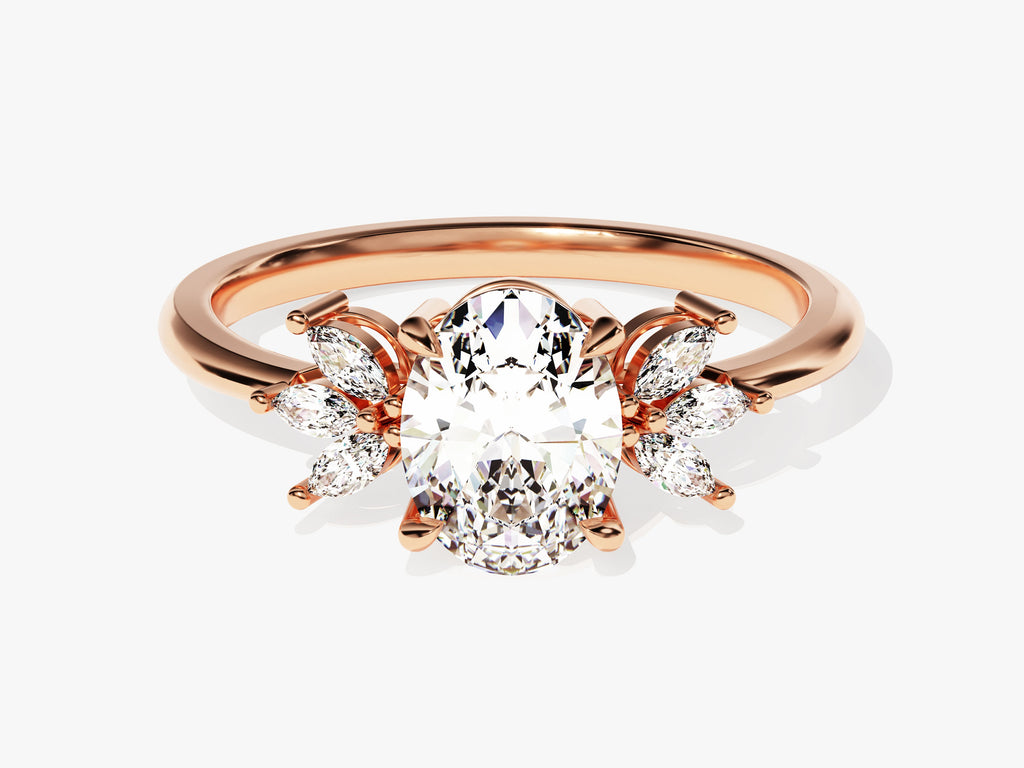 Marquise Cluster Accent Oval Cut Moissanite Engagement Ring (1.50 CT)