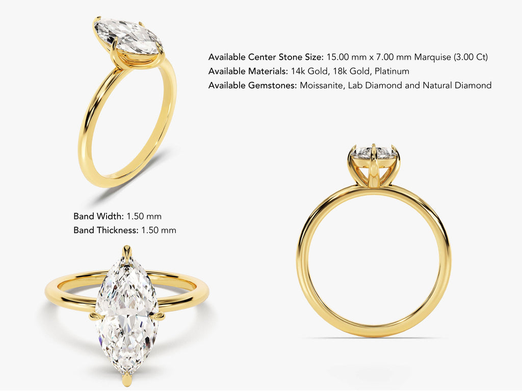 Marquise Cut Solitaire Diamond Engagement Ring (3.00 CT)