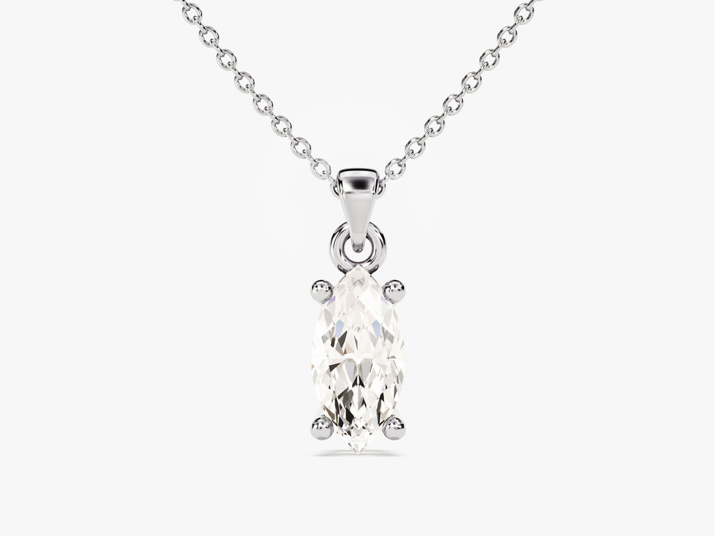 Designed to be the perfect match for any outfit, this pendant is elegant and glamorous. The marquise-cut lab grown diamond or moissanite gives a sleek and polished look that is irresistible.