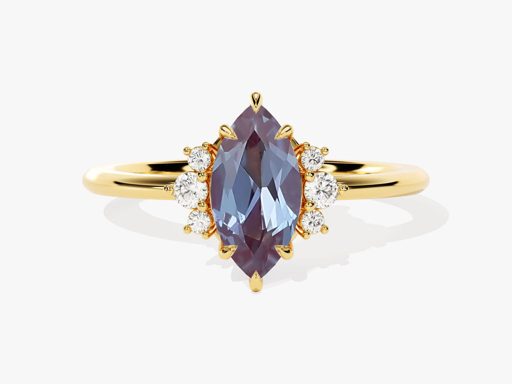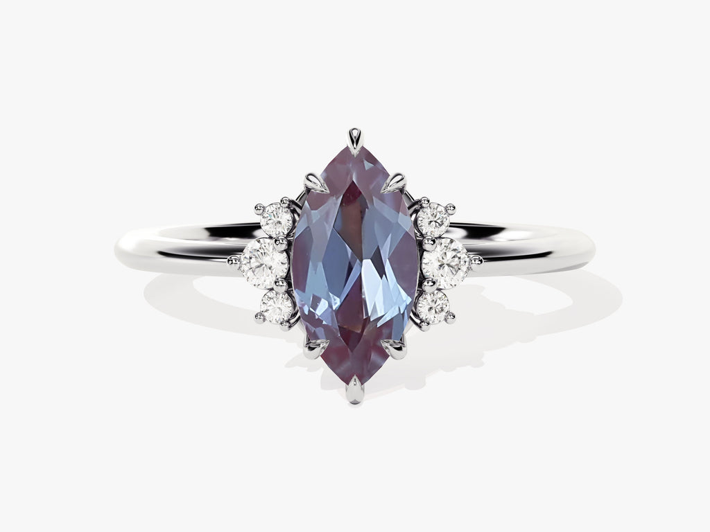 Marquise Lab Alexandrite Engagement Ring with Round Moissanite Sidestones