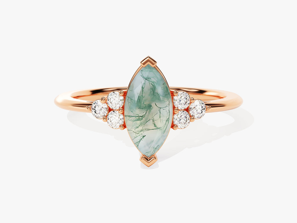 Marquise Moss Agate Engagement Ring with Moissanite Sidestones
