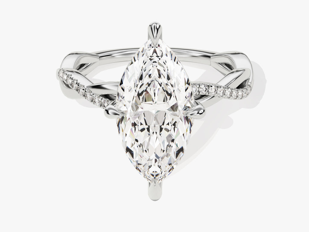 Marquise Twisted Moissanite Engagement Ring with Pave Set Side Stones (3.00 CT)