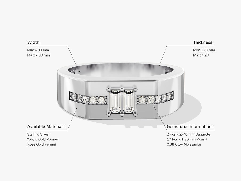 Men's Baguette Cut Moissanite Ring - Gold Vermeil