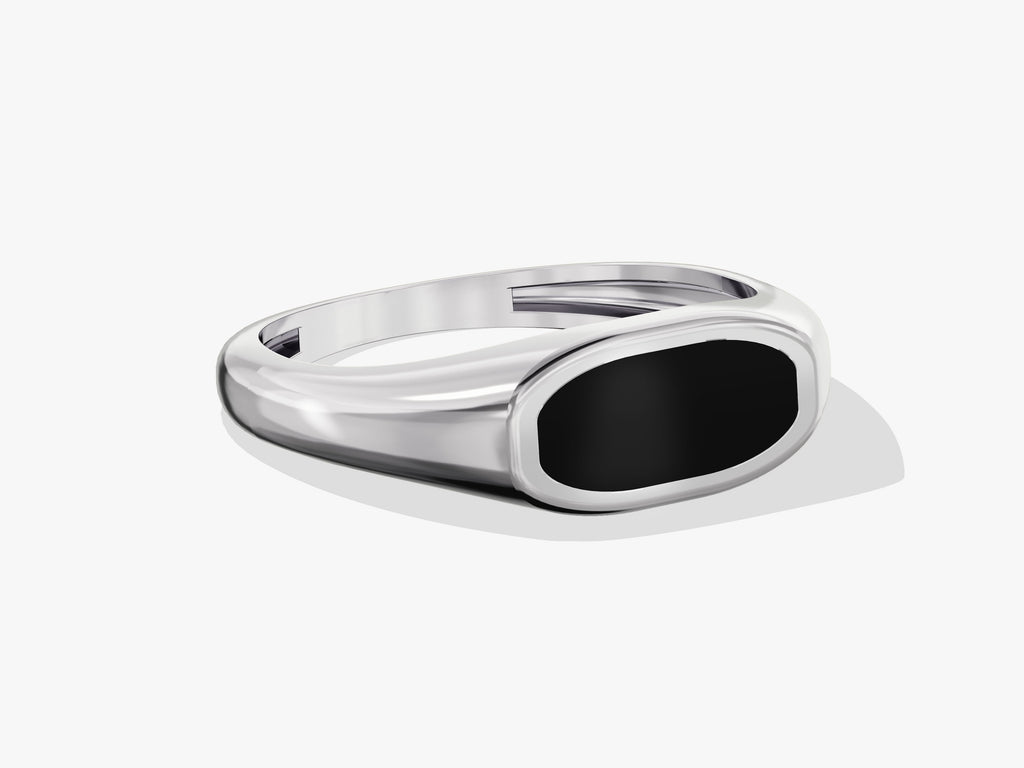 Experience the refined elegance of the Black Enamel Signet Ring. This exquisite piece features a black enamel in a silver band that exudes timeless sophistication. The black enamel adds a bold contrast, making this ring ideal for those who appreciate classic style with a modern edge. It is perfect for both formal occasions and everyday wear.
