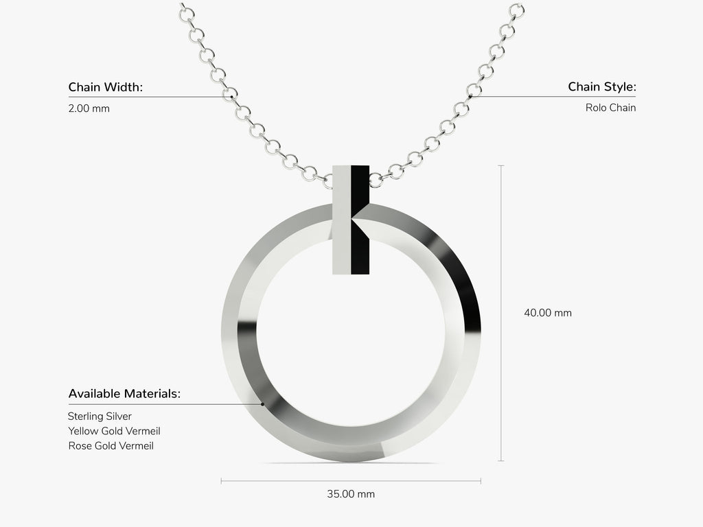 Embrace modern elegance with this circular pendant. Featuring a minimalist design, this pendant is perfect for those who appreciate clean lines and sophisticated style. The smooth, polished surface of the circle pendant adds a touch of luxury to any ensemble, making it a versatile accessory for casual and formal occasions.