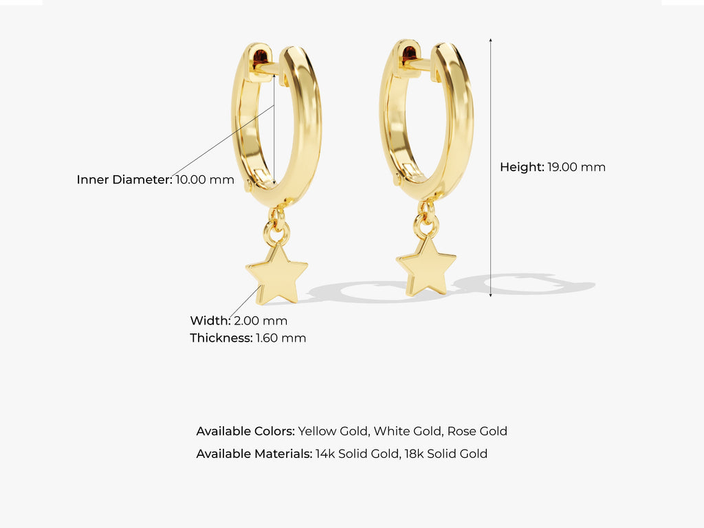 Capture the magic of the night sky with our Mini Star Hoop Earrings. These enchanting earrings feature a delicate star charm that gracefully dangles from a classic hoop, adding a whimsical touch to your jewelry collection.