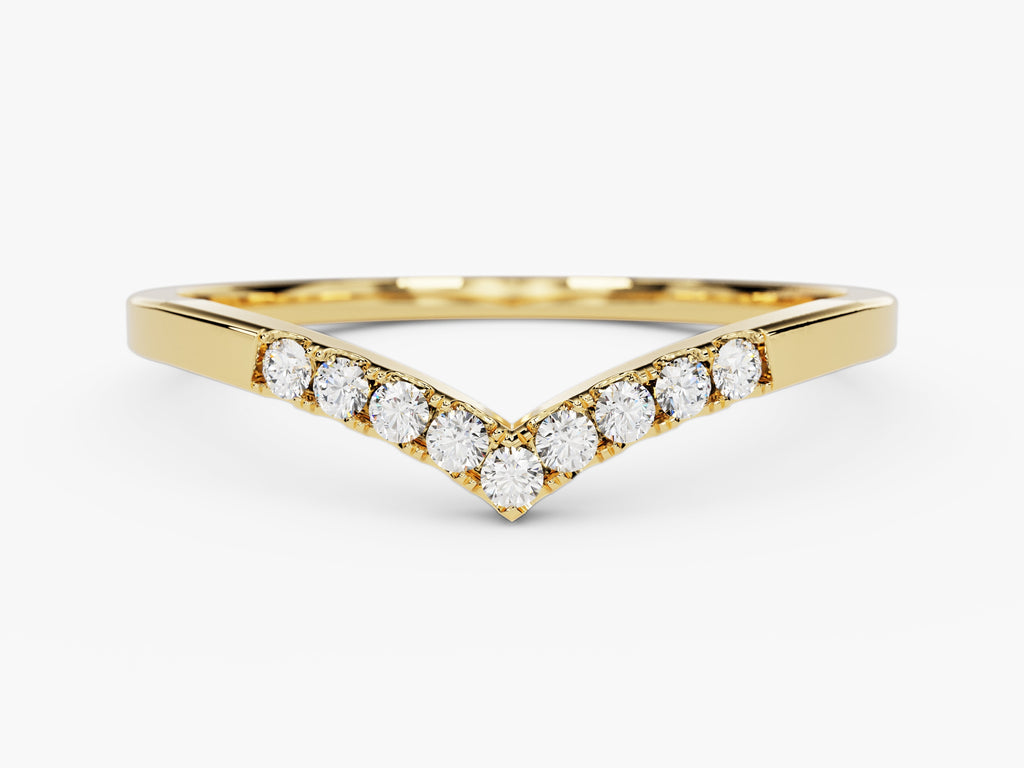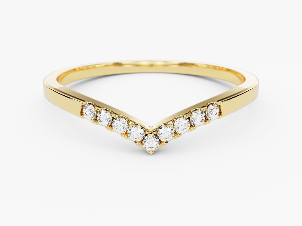 This stunning band features nine dazzling moissanite stones set in a graceful curve. With its radiant sparkle and chic design, this wedding band simply upgrades any ensemble. It's a versatile piece that you'll love wearing every day, whether you're stacking it with other rings or letting it shine on its own.