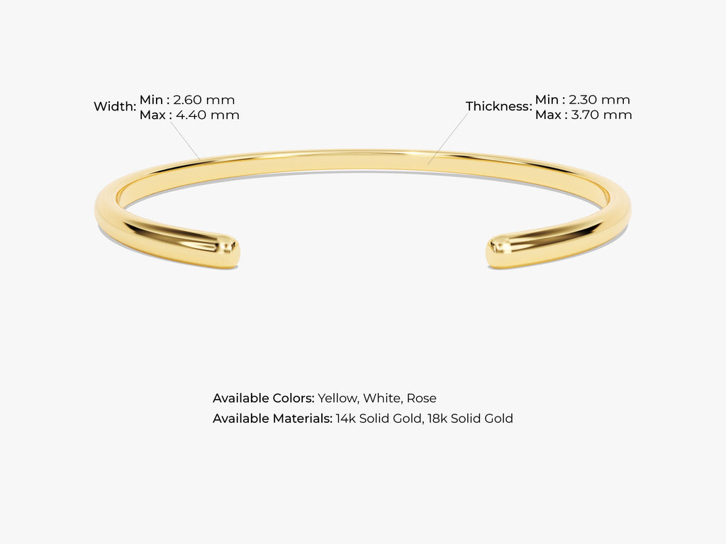 Crafted from gold vermeil, sterling silver or solid gold, this bracelet embodies the essence of sophistication. The open-cuff design takes traditional styling to new heights, offering a modern and versatile canvas that wraps your wrist in a beautiful embrace. The open design makes a chic statement and ensures a comfortable and adjustable fit, adapting effortlessly to your unique style.
