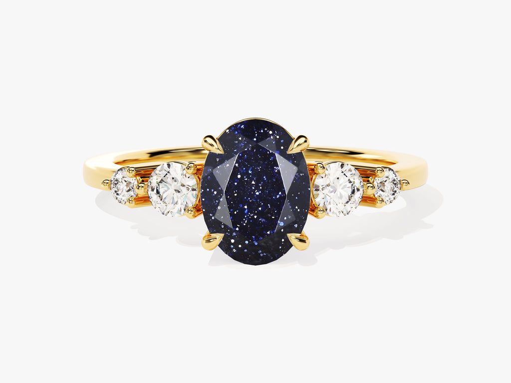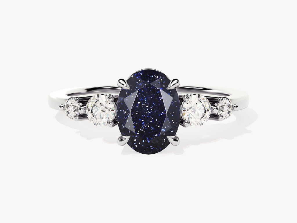 Oval Blue Sandstone Engagement Ring with Moissanite Sidestones