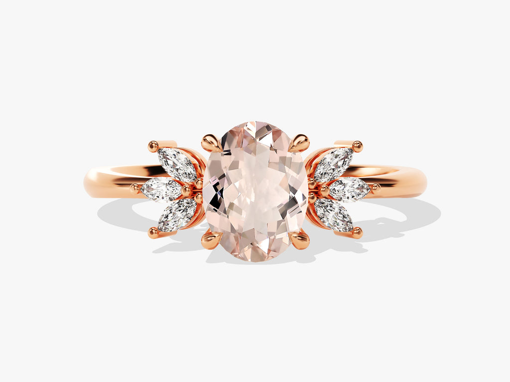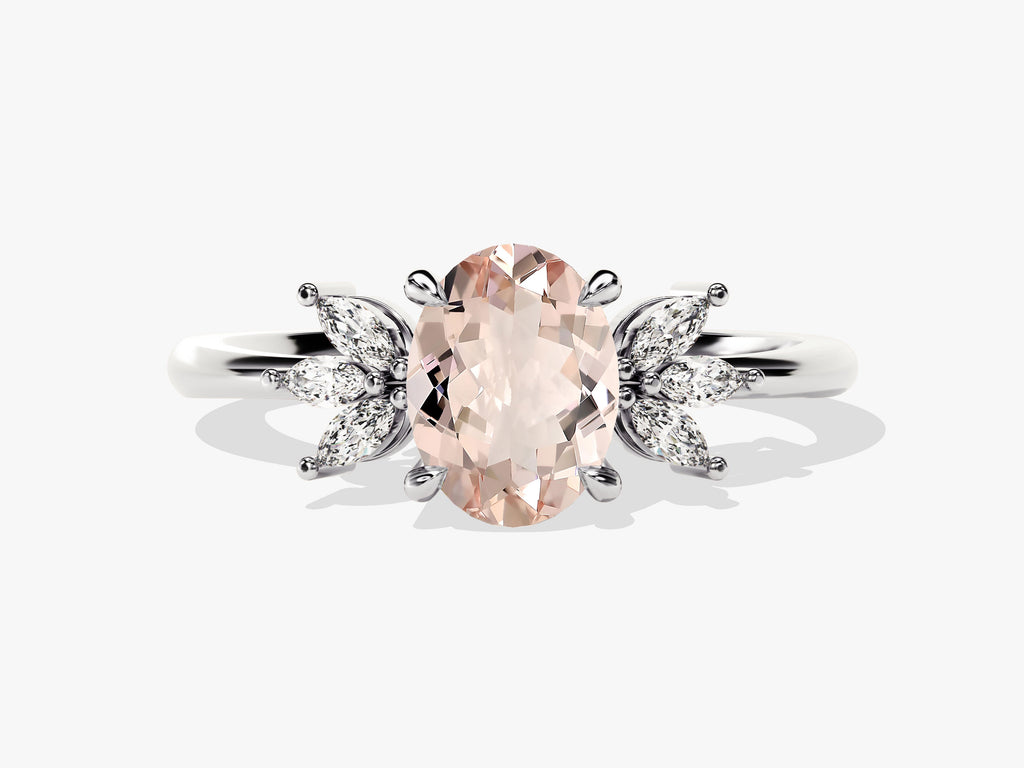 Oval Cut Peach Morganite Engagement Ring with Marquise Sidestones
