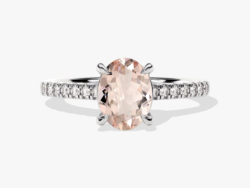 Oval Cut Peach Morganite Engagement Ring with Sidestones