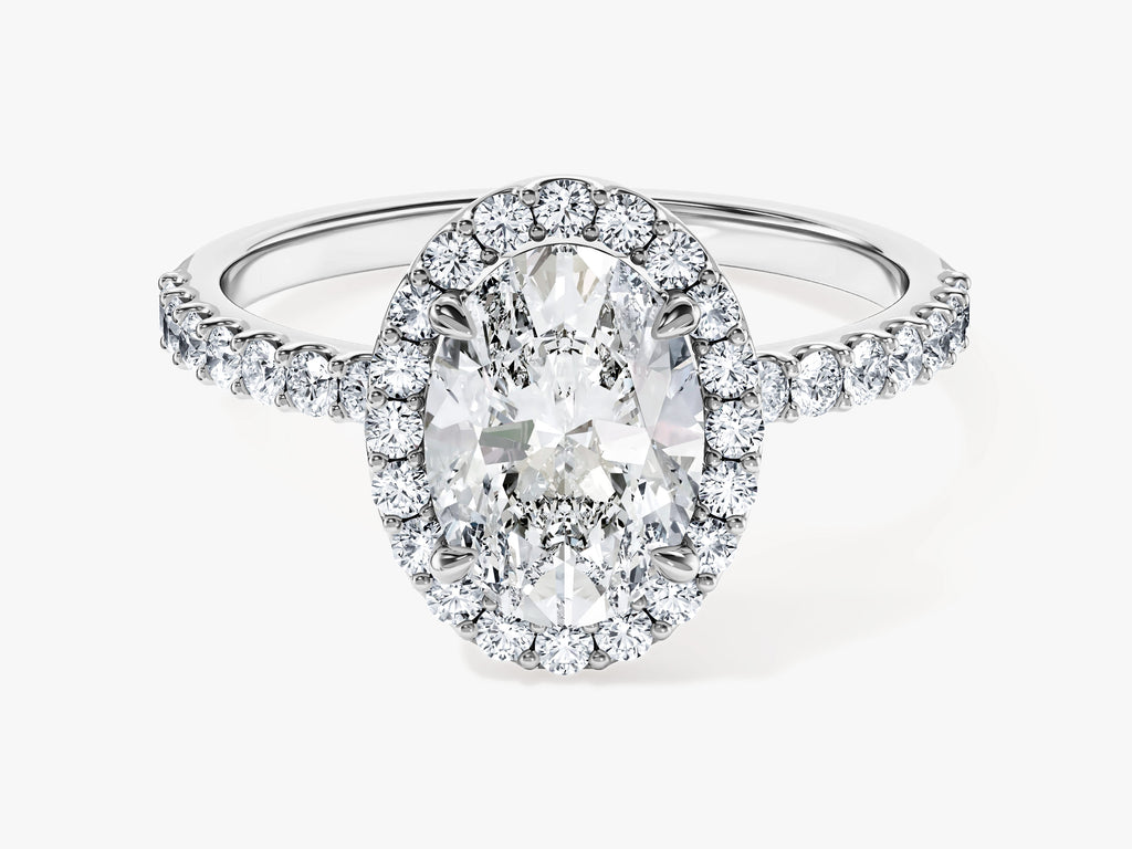 Oval Halo Moissanite Engagement Ring with Pave Set Side Stones (1.50 CT)