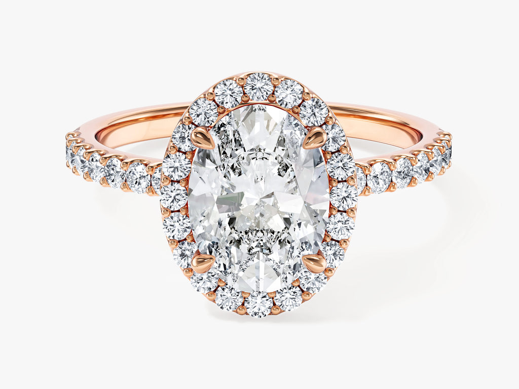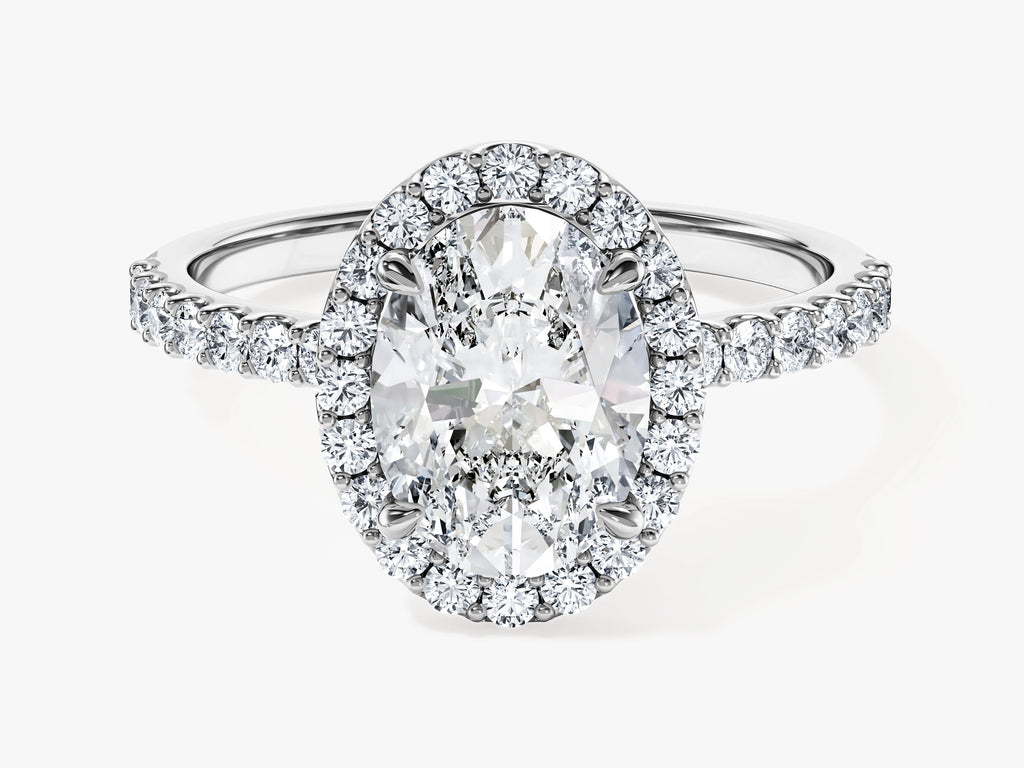 Oval Halo Moissanite Engagement Ring with Pave Set Side Stones (2.00 CT)