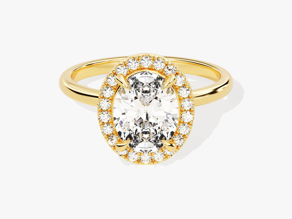 Experience the profound allure of our Oval Halo Diamond Engagement Ring, a harmonious union of classic charm with a contemporary twist. This extraordinary ring showcases a brilliant oval-cut diamond, meticulously created to emphasize its remarkable clarity and mesmerizing charm. The delicate halo setting adds a modern and refined touch, symbolizing the brilliance and uniqueness of your love.