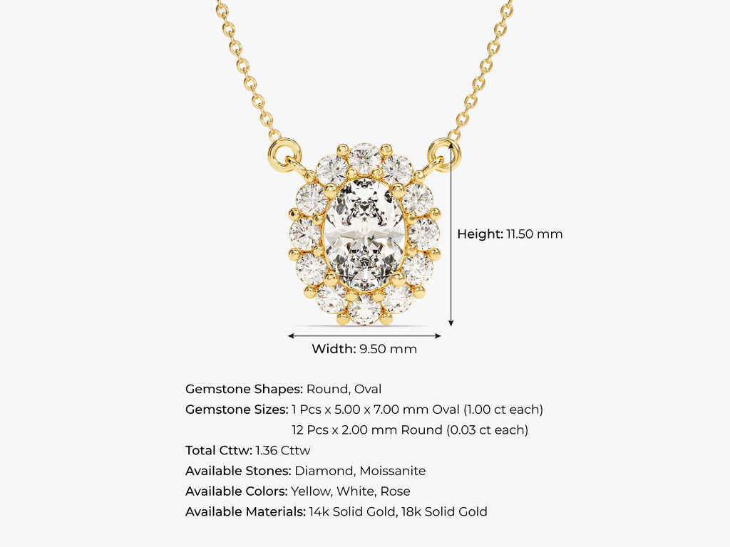 • Number of Stones and Size: 1 x 5.00 mm x 7.00 mm Oval (1.00 ct), 10 x 2.00 mm Round (0.03 ct each)