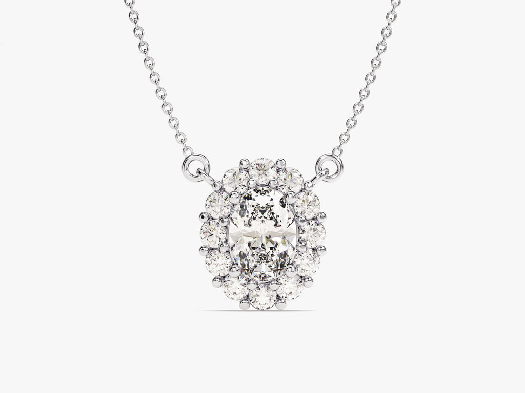 Drape yourself in the allure of timeless elegance with our Oval Halo Necklace in radiant solid gold, gold vermeil or sterling silver. Meticulously crafted, this exquisite piece features a delicate chain and a mesmerizing oval pendant adorned with a brilliant halo of stones, creating a captivating play of light and luxury.