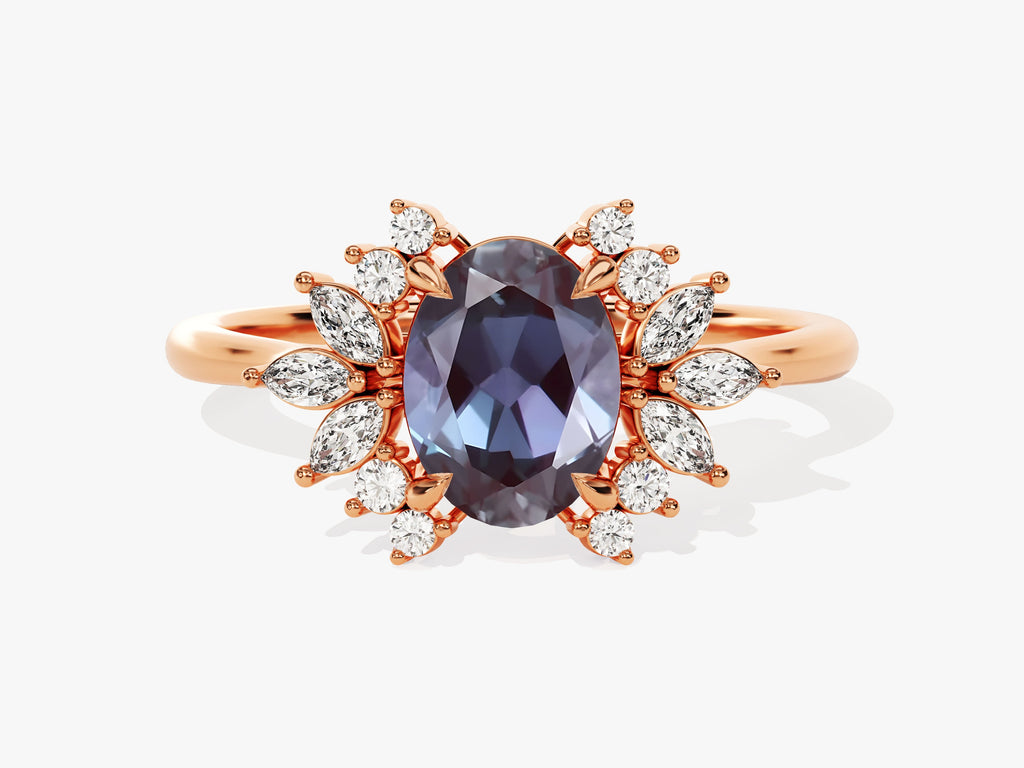 Oval Lab Alexandrite Engagement Ring with Moissanite Cluster