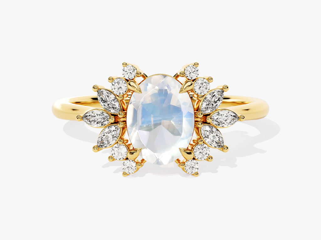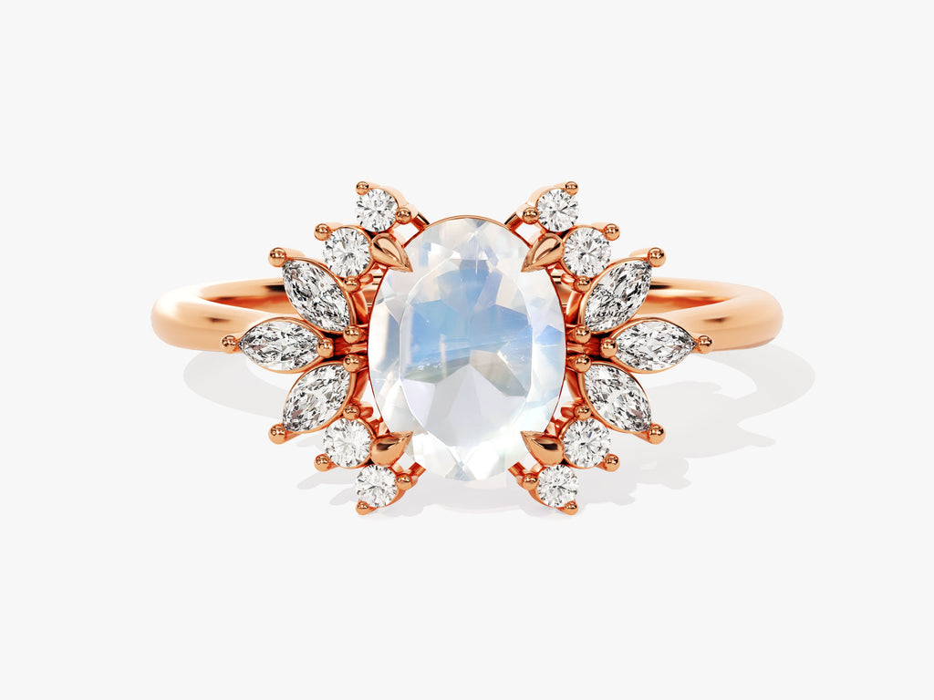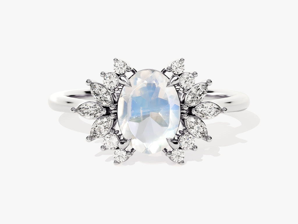 Oval Moonstone Engagement Ring with Moissanite Cluster