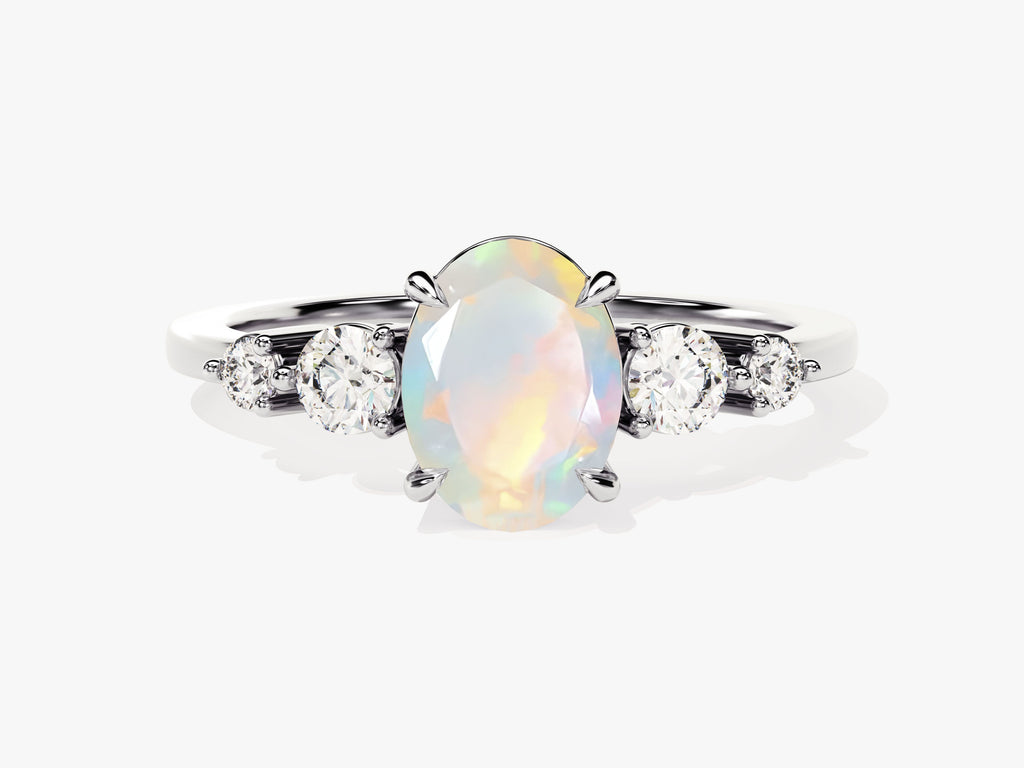 Oval Opal Engagement Ring with Moissanite Sidestones