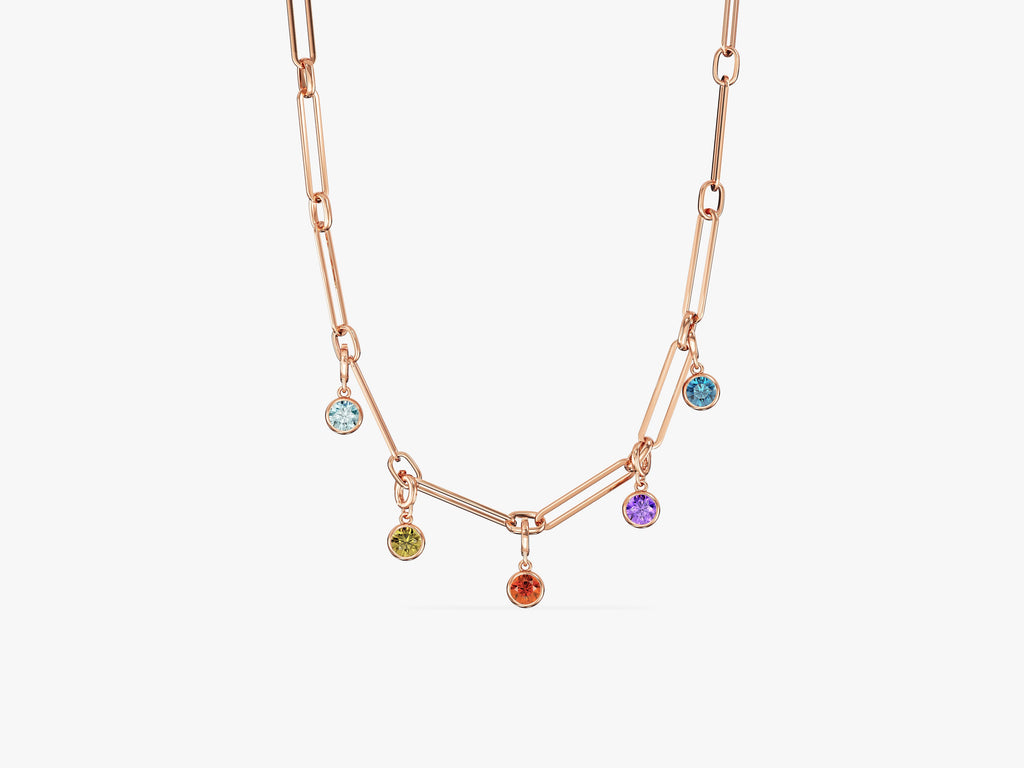 A timeless piece that blends modern simplicity with personal meaning. This necklace features a sleek paperclip chain adorned with a bezel-set birthstone and a subtle charm, creating an effortlessly elegant look.