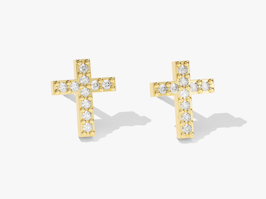 The Pave Cross Earrings feature a stunning cross design embellished with shimmering pave-set stones. Crafted from solid gold, gold vermeil or sterling silver, these earrings blend elegance with spiritual significance, making them perfect for everyday wear and special occasions.