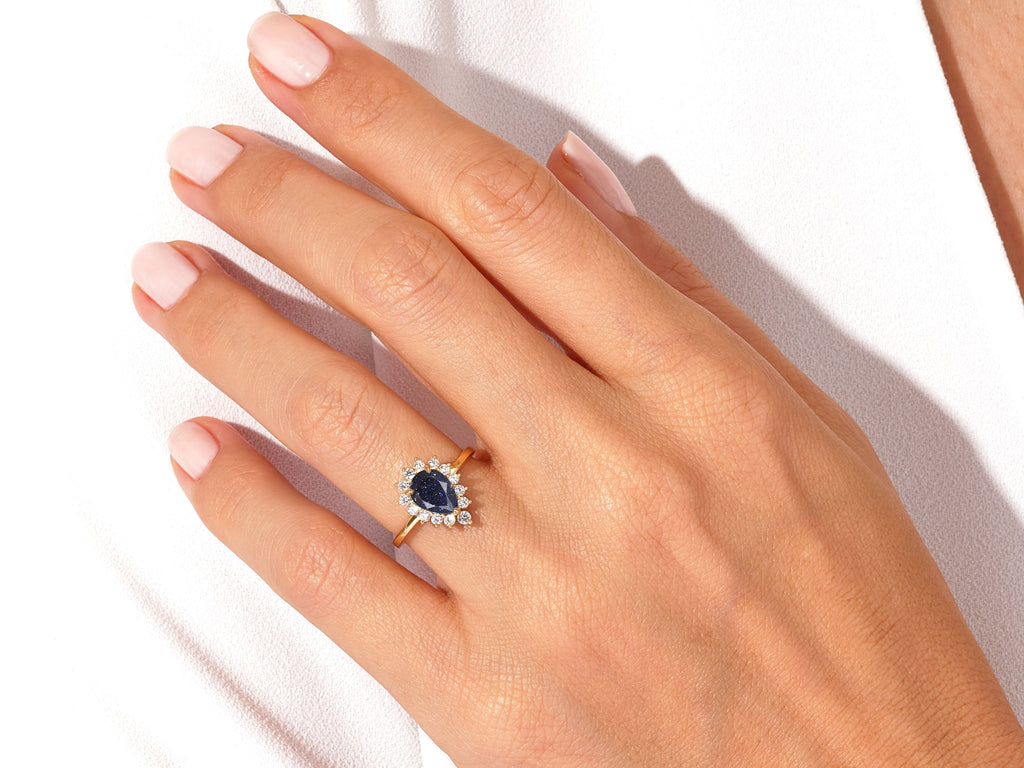 Pear Blue Sandstone Engagement Ring with Moissanite Halo