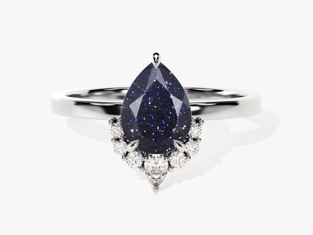 Pear Blue Sandstone Vintage Engagement Ring with Moissanite
