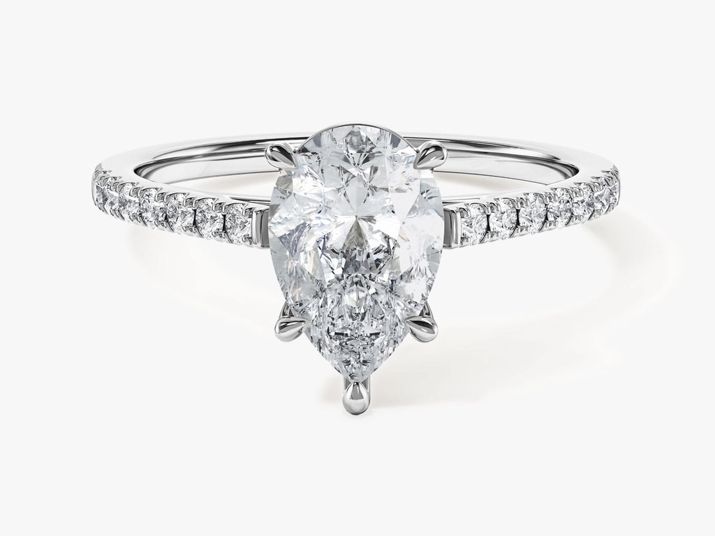 Pear Cut Moissanite Engagement Ring with Pave Set Side Stones (1.50 CT)