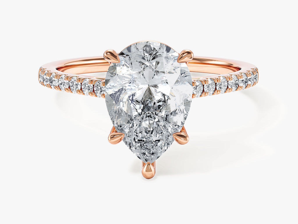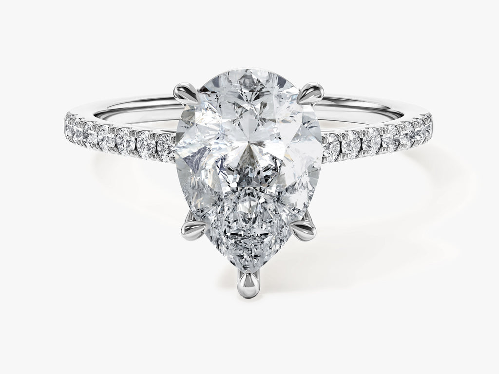 Pear Cut Moissanite Engagement Ring with Pave Set Side Stones (2.00 CT)