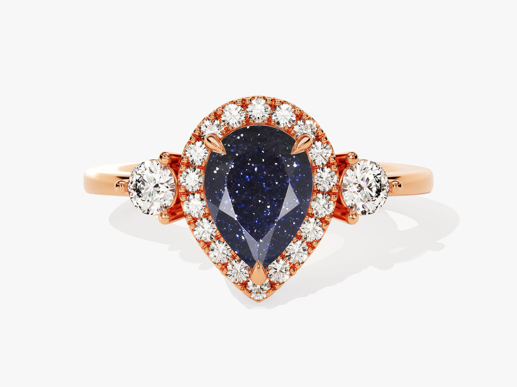 Pear Halo Blue Sandstone Engagement Ring with Moissanite Sidestones
