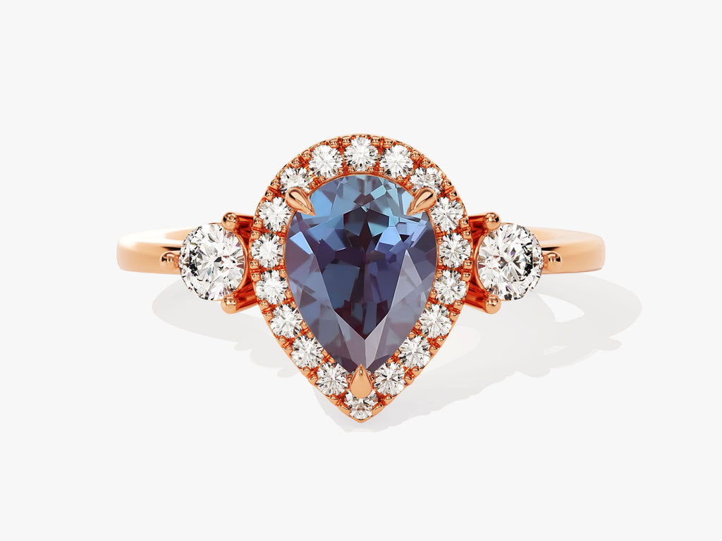 Pear Halo Lab Alexandrite Engagement Ring with Moissanite Sidestones