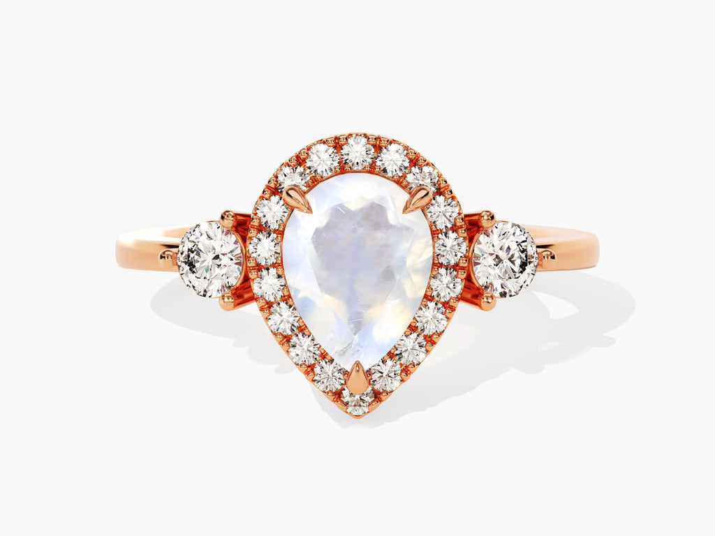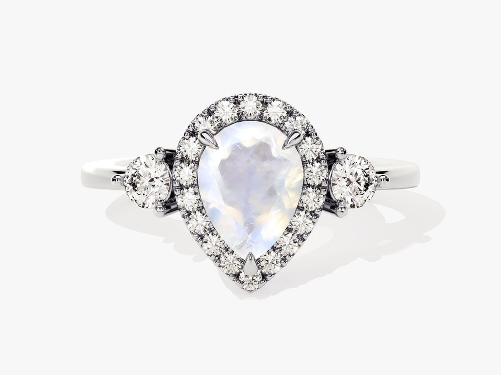 Pear Halo Moonstone Engagement Ring with Moissanite Sidestones