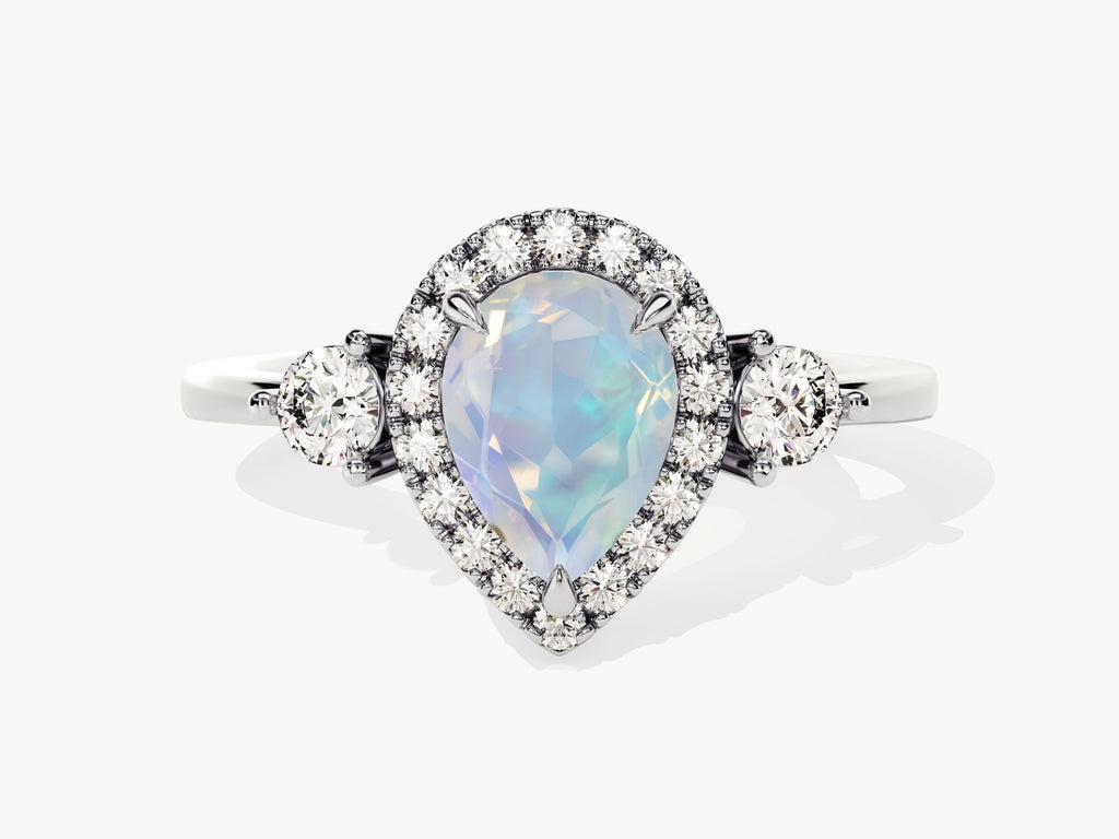 Pear Halo Opal Engagement Ring with Moissanite Sidestones