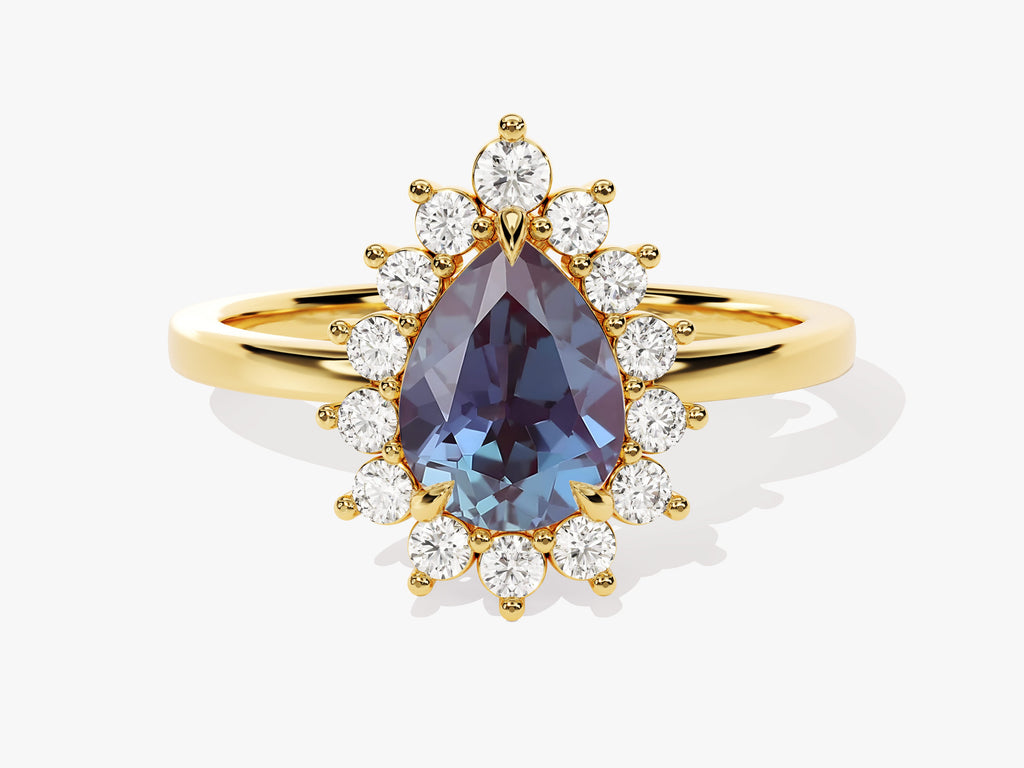 Pear Lab Alexandrite Engagement Ring with Moissanite Halo