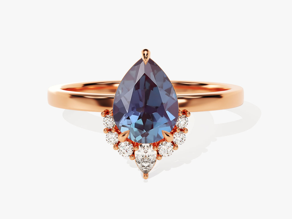 Pear Lab Alexandrite Vintage Engagement Ring with Moissanite