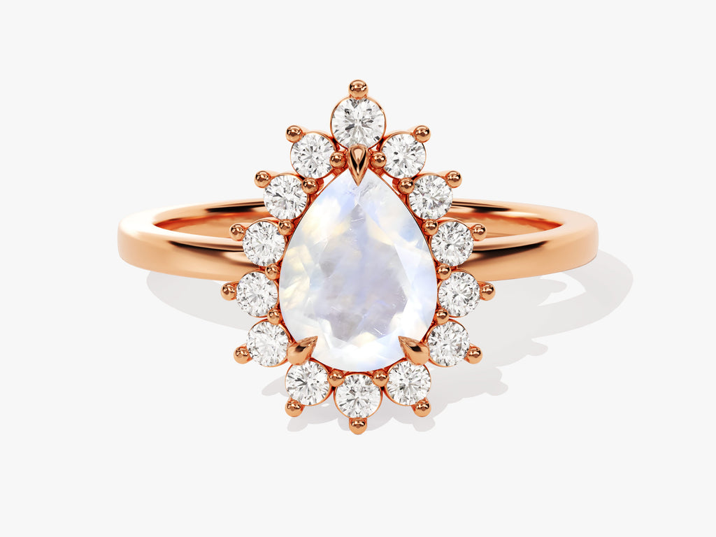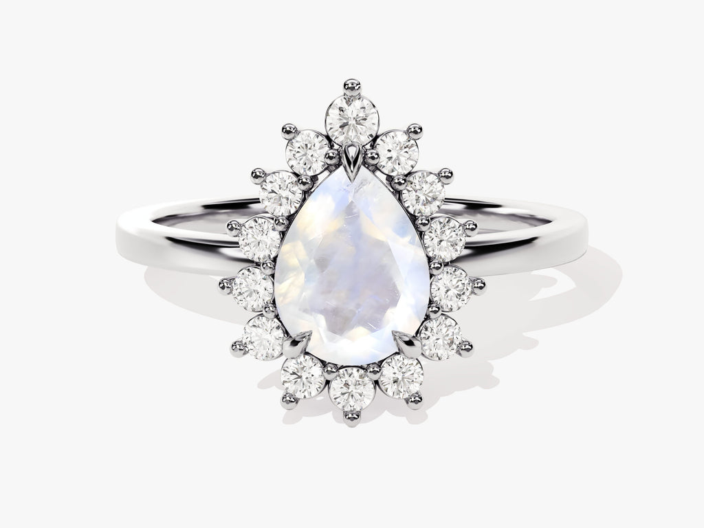 Pear Moonstone Engagement Ring with Moissanite Halo
