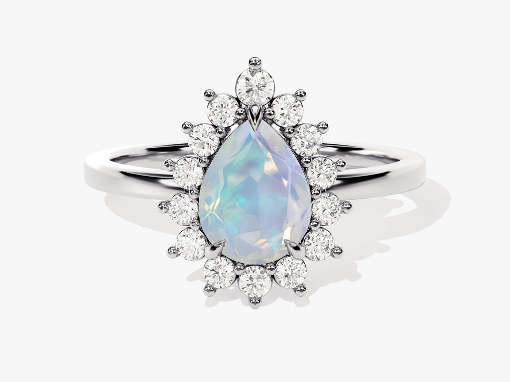 Pear Opal Engagement Ring with Moissanite Halo