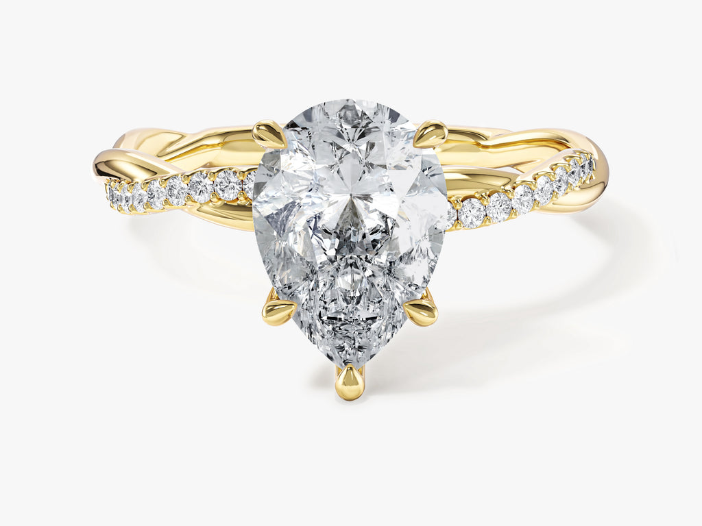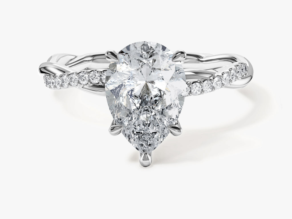 Pear Twisted Lab Grown Diamond Engagement Ring with Pave Set Side Stones (2.00 CT)