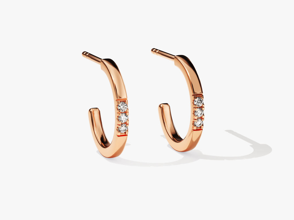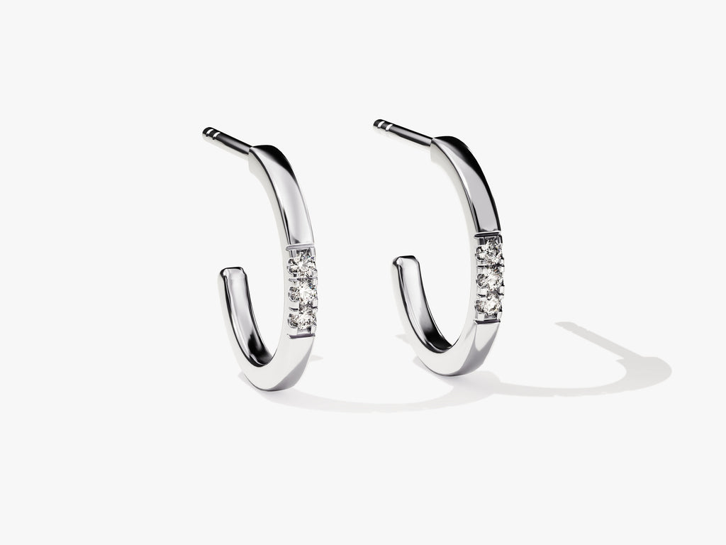 Our petite diamond huggie earrings are the perfect classic, yet modern statement that you can wear every day. They’re made with solid gold, gold vermeil or sterling silver and feature 3 petite white diamond - moissanite stones in each earring a huggie setting. You won’t want to take these off!