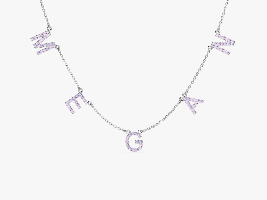 The gemstone-studded letters add a touch of elegance and sentiment, making this pink tourmaline necklace a personalized work of art that symbolizes your unique story.