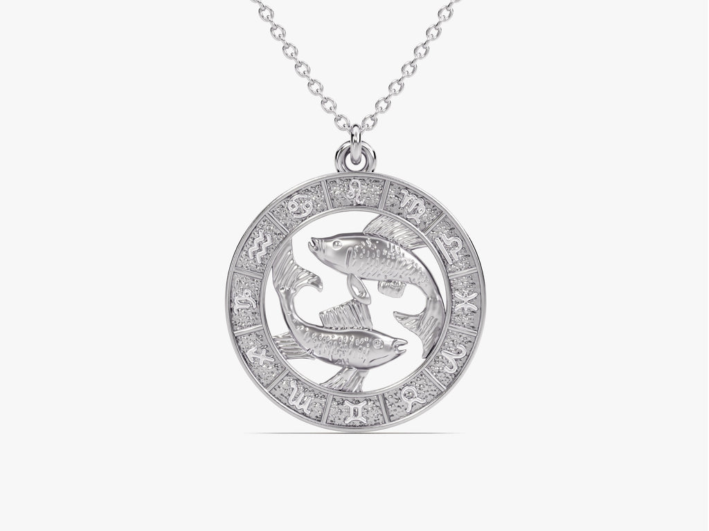 The necklace features a delicate and intricately crafted pisces charm made from high-quality solid gold, gold vermeil or sterling silver. The charm may be designed in various styles, but commonly it could depict the symbol of pisces, which is two fish swimming in opposite directions, connected by a delicate loop. The charm is likely to be finely detailed to capture the essence of the zodiac sign.