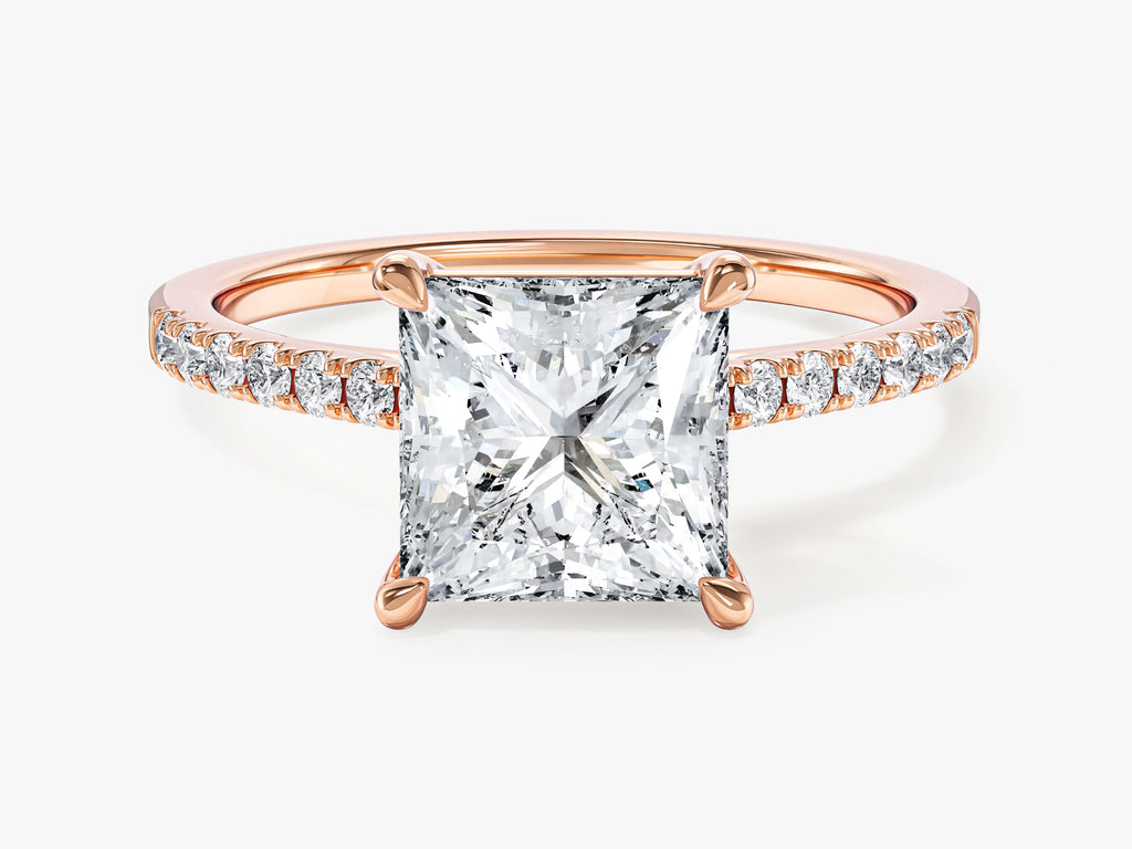 Princess Cut Lab Grown Diamond Engagement Ring with Pave Set Side Stones (2.00 CT)