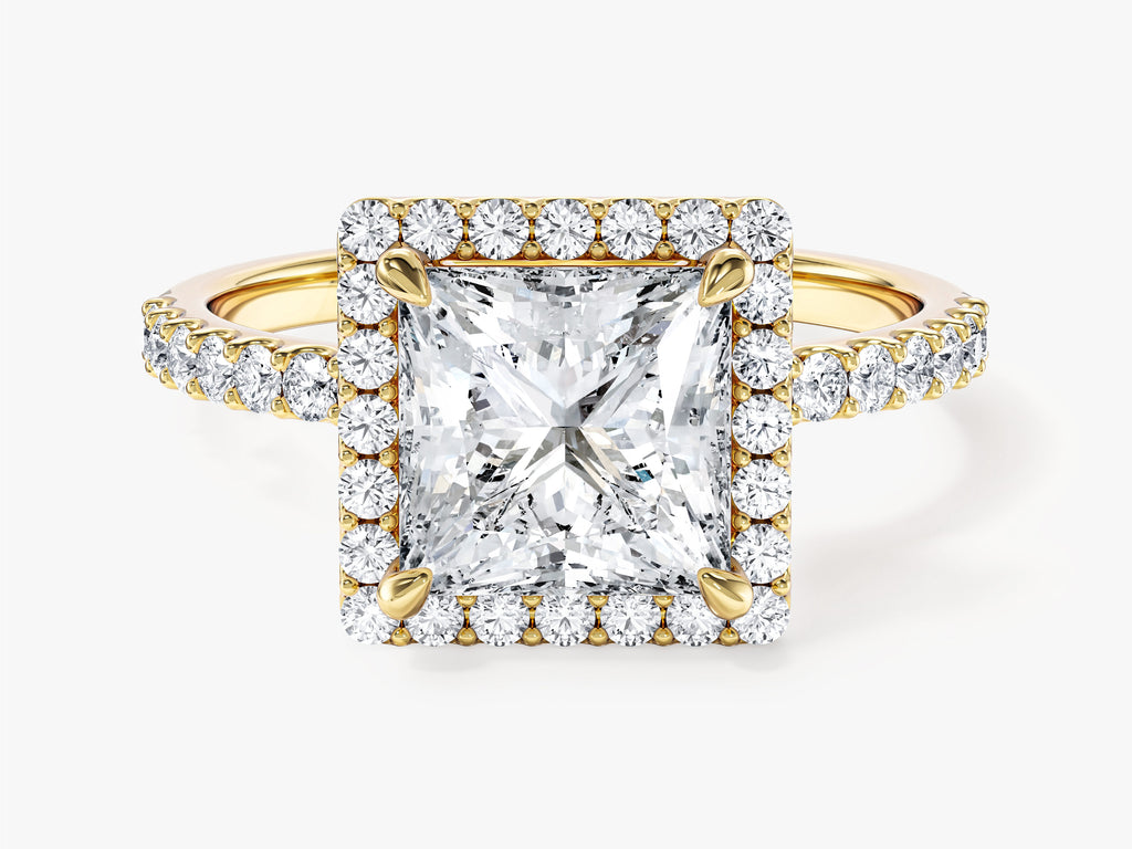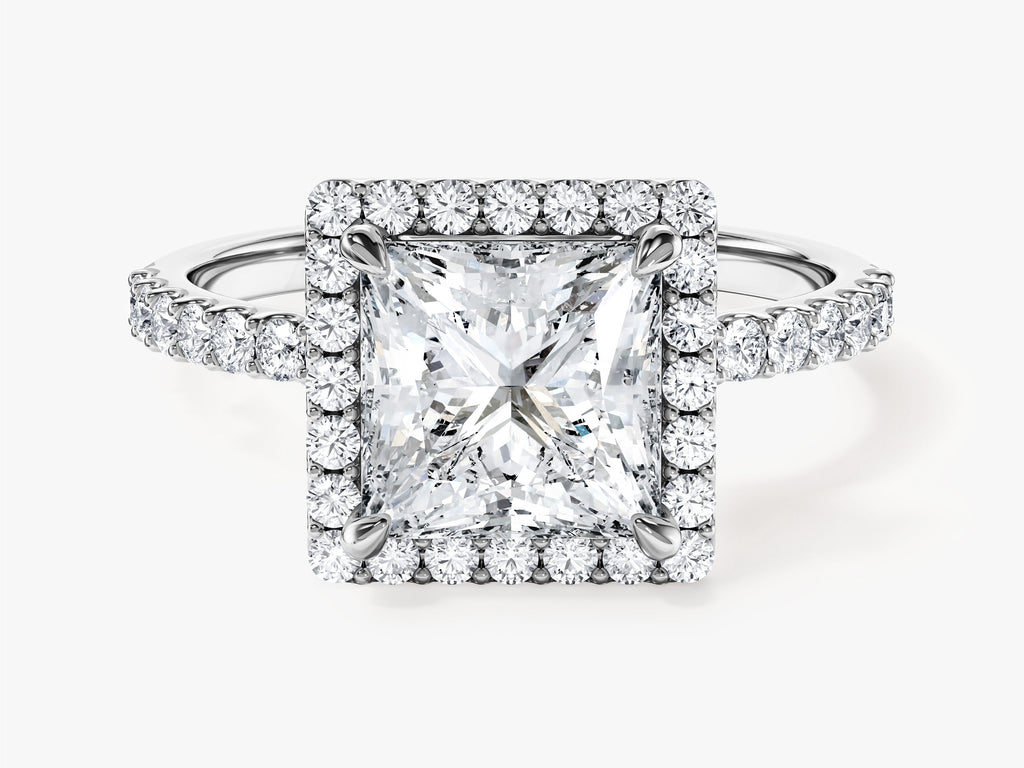 Princess Halo Lab Grown Diamond Engagement Ring with Pave Set Side Stones (2.00 CT)