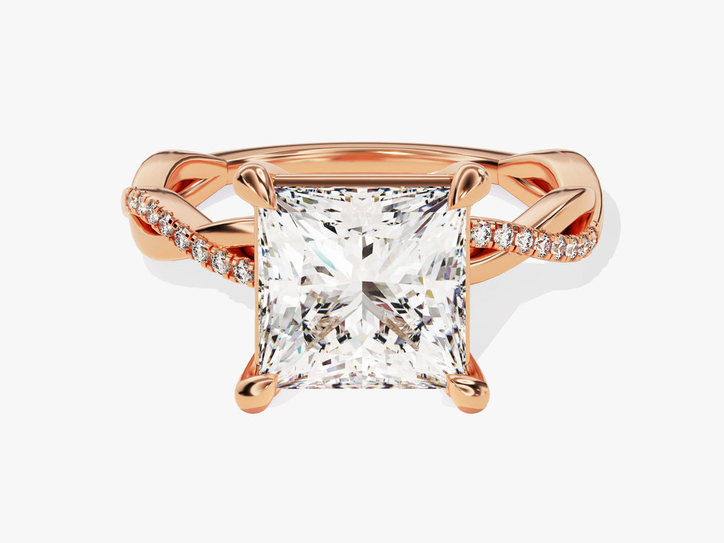 Princess Twisted Diamond Engagement Ring with Pave Set Side Stones (3.00 CT)