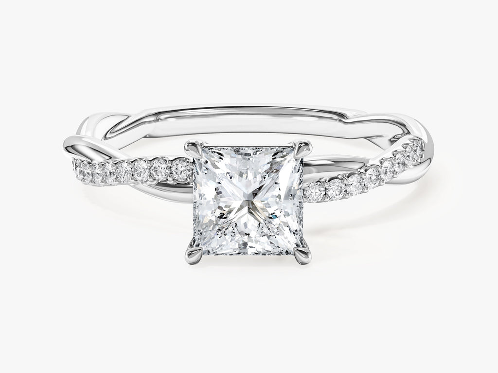 Princess Twisted Lab Grown Diamond Engagement Ring with Pave Set Side Stones (1.00 CT)