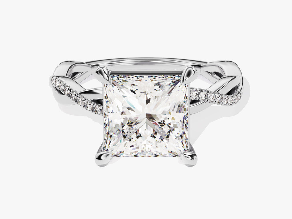 Princess Twisted Lab Grown Diamond Engagement Ring with Pave Set Side Stones (3.00 CT)