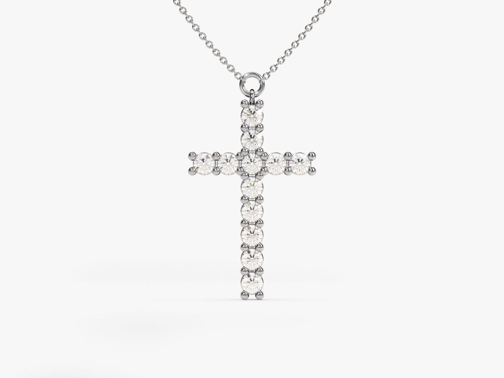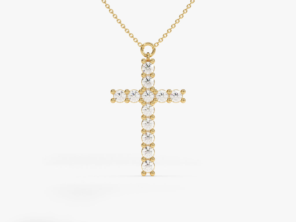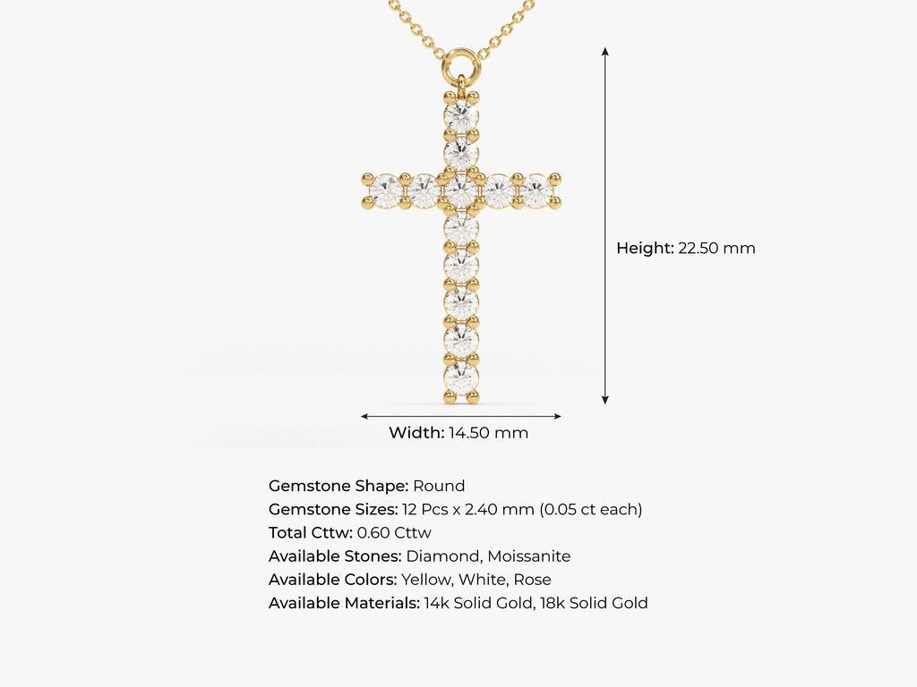Embrace the enduring beauty of faith and the captivating sparkle with the Prong Set Cross Necklace. This exquisite piece combines a cherished symbol with sparkles, creating a necklace that's both meaningful and undeniably luxurious. The prong setting not only showcases the brilliance of the diamonds - moissanite but also ensures they are securely held. This timeless design transcends trends, creating a treasured piece you'll cherish for years to come.